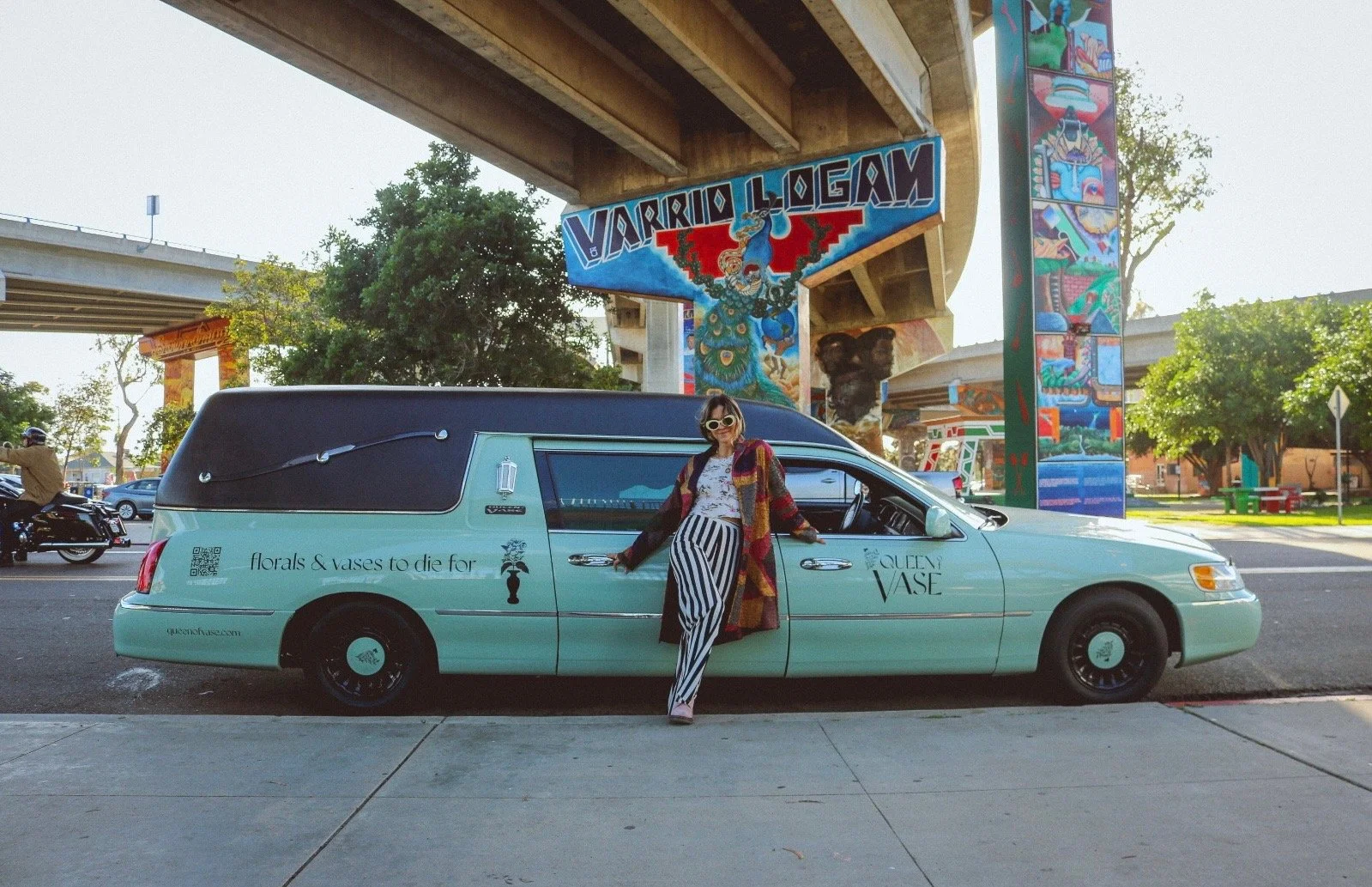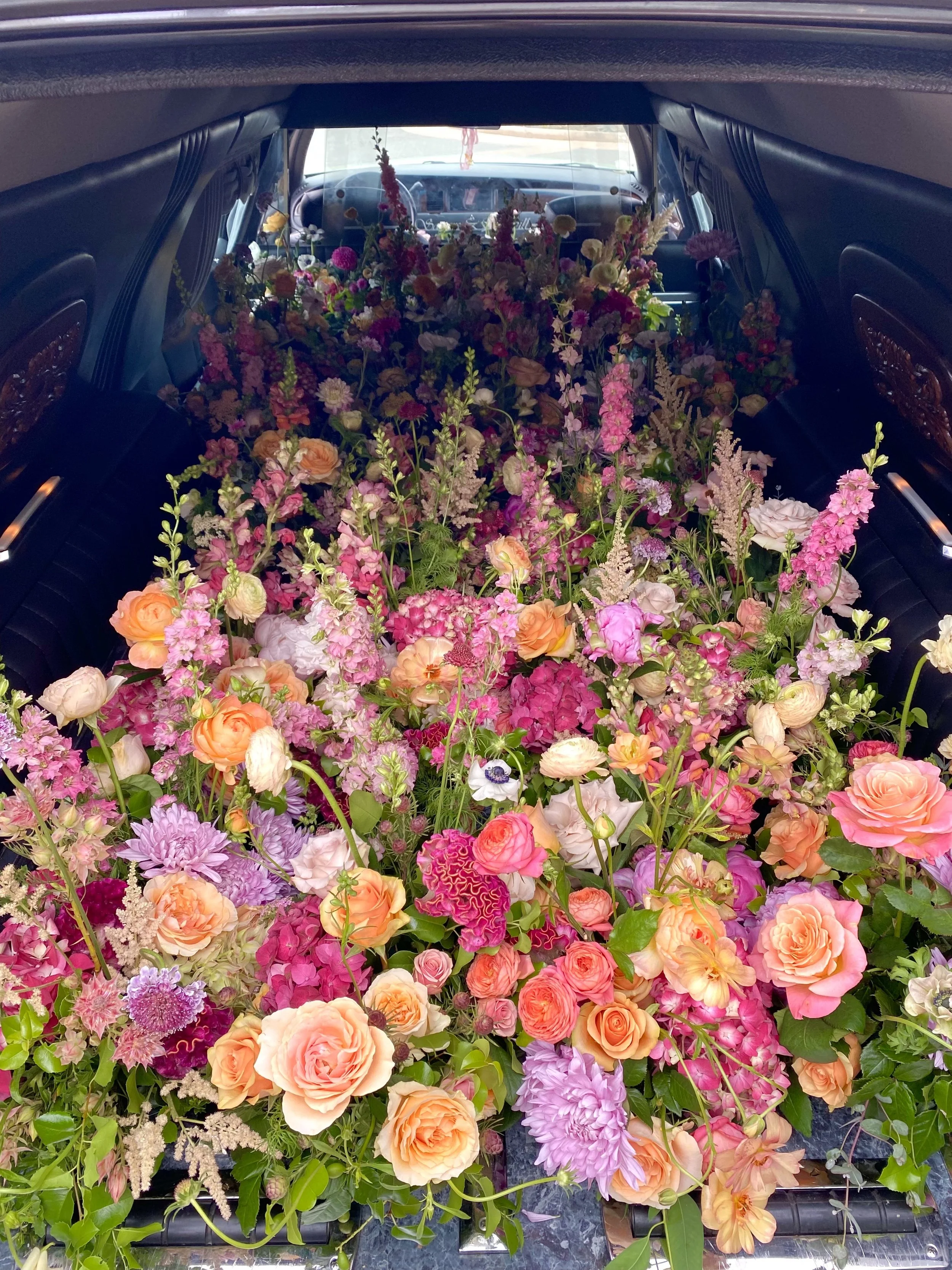 Flowers deserve a dramatic entrance. Which is why we deliver them in a hearse.